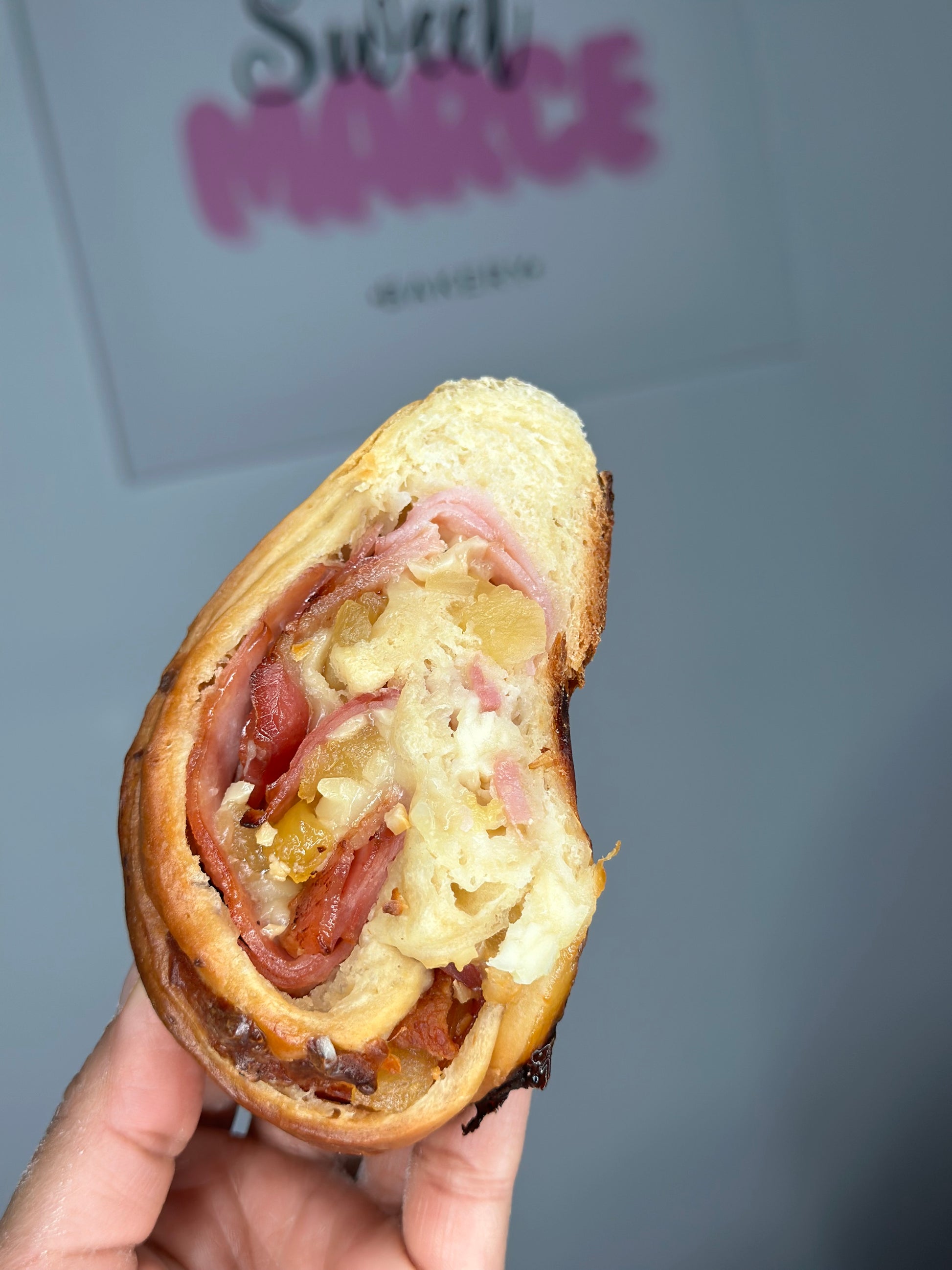Rellena de jamón, queso, bacon y piña