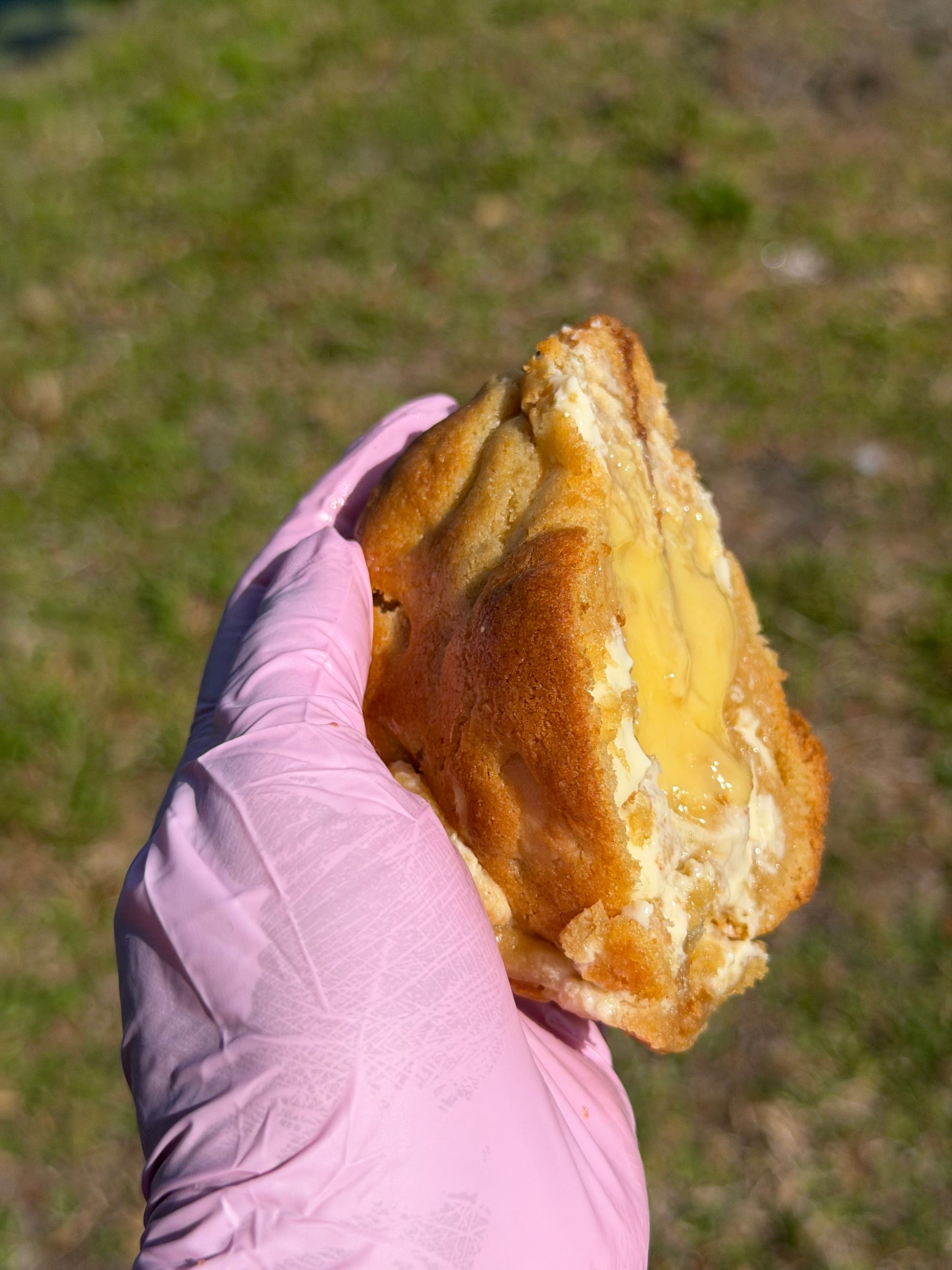 Soft cookie filled with passion fruit cream made from natural pulp, with white chocolate chunks in the dough for a perfect balance of tropical and sweet flavors.